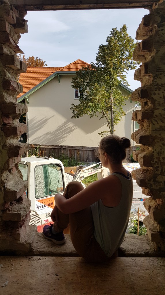 Und für alle, die es brennend interessiert, wie der Stand unserer Baustelle ist: wir haben gerade den Estrich im Keller bekommen. In der Wohnetage wird in einigen Räumen schon ausgemalt, weil die Küche bald kommt. Im Dachgeschoss haben wir endlich echte Zimmer statt dem Dachboden. Bis auf eine Überraschung läuft alles relativ planmäßig. Wir haben nämlich entdeckt, dass der Boden in unserer Veranda morsch ist und an einer Stelle durchbricht. Auch wenn das zuerst ein ziemlicher Alptraum war, ist mittlerweile der Bodenaufbau schon erneuert und schaut super aus. Man sieht also, es läuft. Es gibt Tage, da geht es auf unserer Baustelle zu wie in einem Ameisenhaufen: zehn Arbeiter oder mehr arbeiten fleißig vor sich hin und machen unseren Traum vom Eigenheim wahr.
