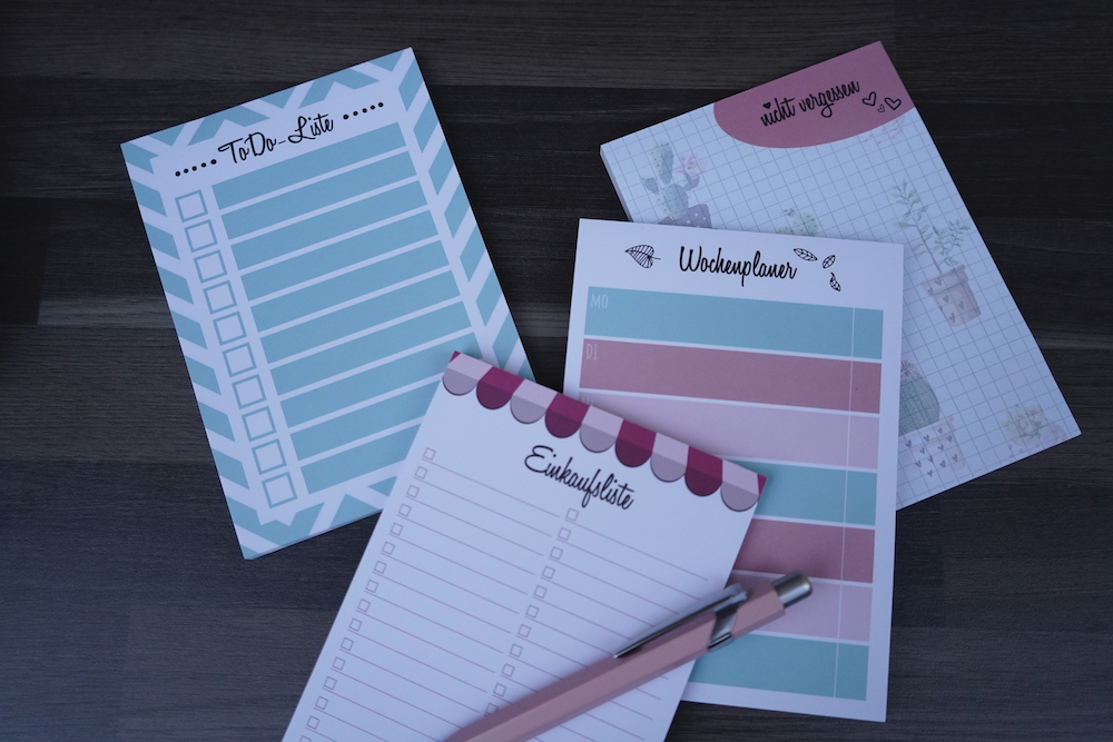 Und damit ich wichtige Dinge, dringende Aufgaben und meine täglichen Einkäufe in meinem Kalender nicht übersehe, nutze ich zusätzliche Listen. Ich bin ein Riesenfan von Listen aller Art, weshalb ich mich besonders über die tollen Listenblöcke von der lieben Stephie von HochzeitDIY gefreut habe. Die Blöcke sind nicht nur super praktisch, sondern auch einfach wunderhübsch. Mit dem Format A6 passen die einzelnen Listen perfekt in meinen Kalender, sind aber trotzdem groß genug um nicht verloren zu gehen. Zum Beispiel die Einkaufsliste: normalerweise fuzle ich viel zu viele Dinge auf einen viel zu kleinen Zettel und wundere mich dann, warum ich den Zettel in meiner Handtasche nicht mehr finde.