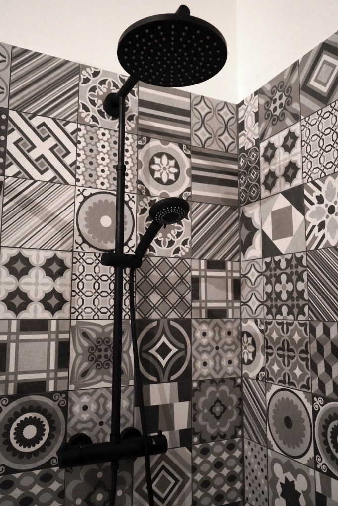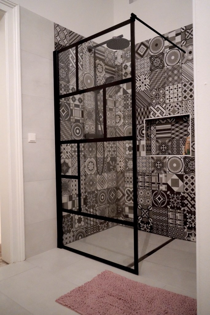 Unsere Duschwand haben wir dann relativ bald bei Duschmeister bestellt (nämlich unabhängig von der später zustande gekommenen Kooperation), da das der einzige Shop war, der diesen Look in dieser Breite hatte. Einige Wochen später haben wir dann den passenden Duschkopf bekommen und seitdem bin ich einfach schockverliebt in unser Bad. Aber seht selbst: