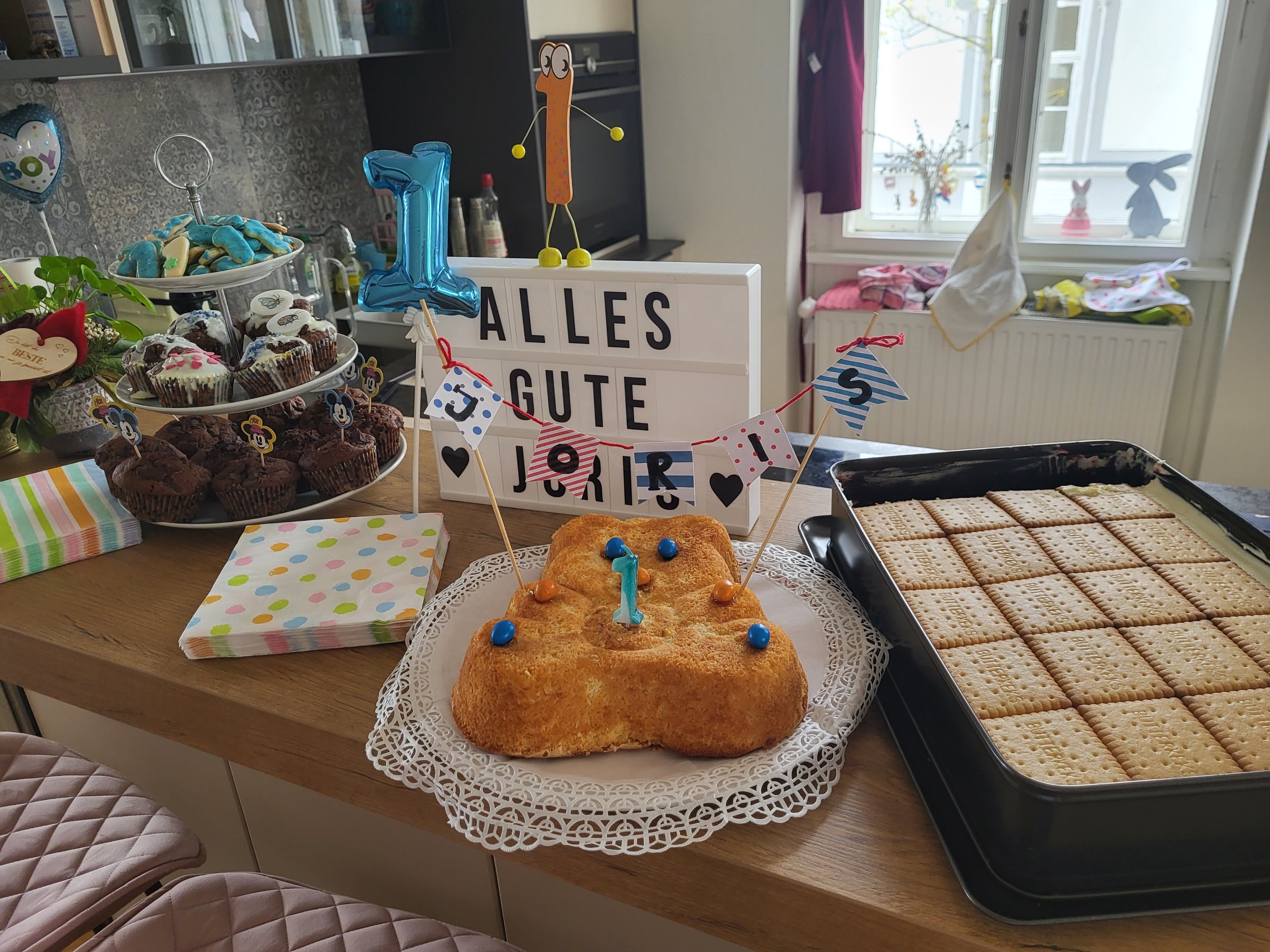 Ich wollte diesen besonderen Tag gerne mit einigen wichtigen Menschen feiern, die aber alle auf einmal zu viel für mich und meinen Sohn gewesen wären. Auf verschiedene Tage aufteilen wollte ich die Gäste auch nicht, sonst hätte ich ja vielleicht 2 oder 3 mal Kuchen backen müssen. Also haben wir ein Open House veranstaltet und einfach gesagt, jeder kann (in einem vorgegeben Zeitrahmen) kommen, wann er möchte.