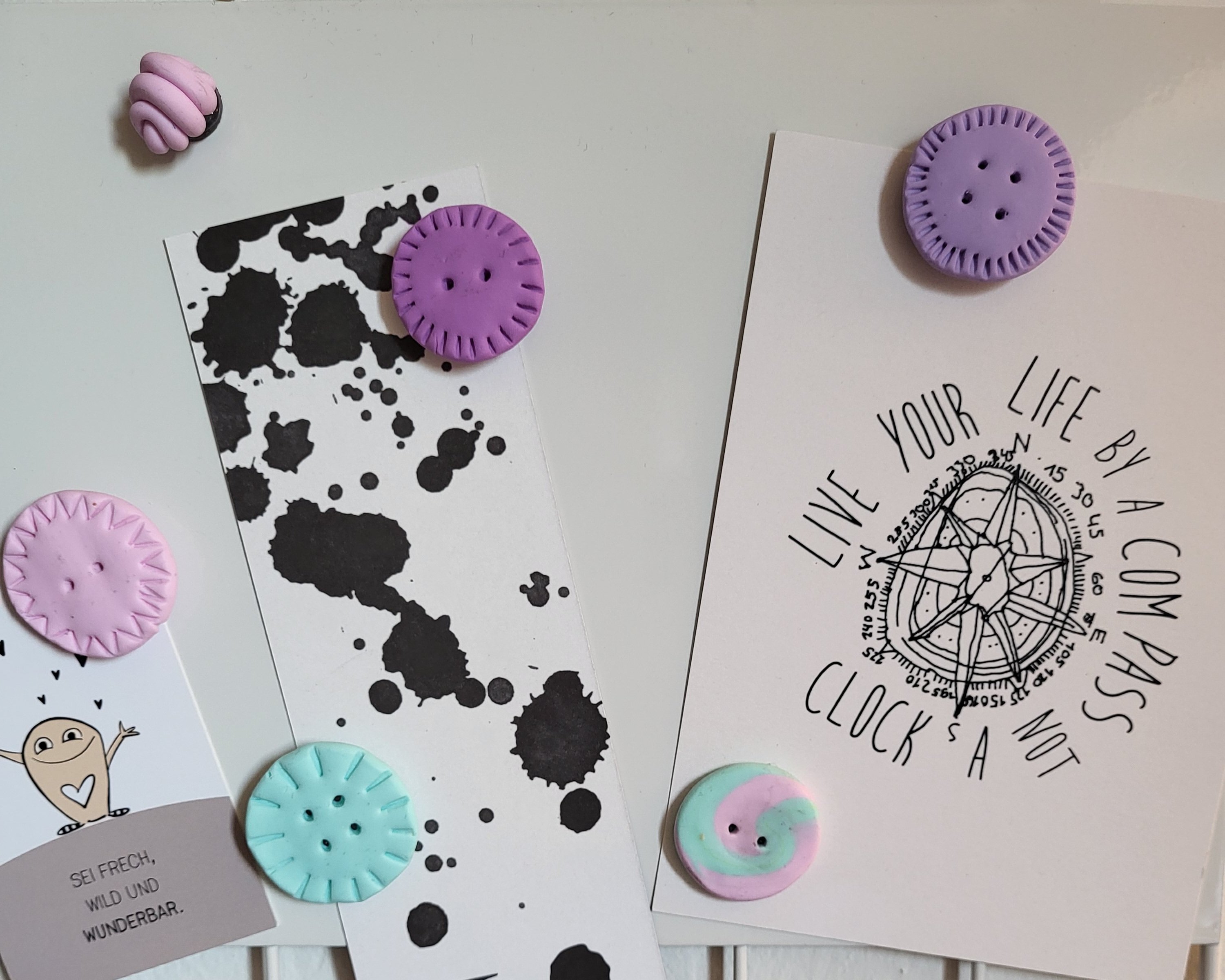 Mittlerweile habe ich Magnete, Schlüsselanhänger, Blumenstecker, kleine Schalen und Krimskrams aller Art modelliert und ich kann einfach nicht aufhören. Abends, wenn mein Sohn im Bett ist und mein Mann Switch spielt, sitze ich und knete vor mich hin. Ich freu mich übers Tun und über das Endprodukt – nie hätte ich gedacht, dass ich dafür ein Händchen hätte.