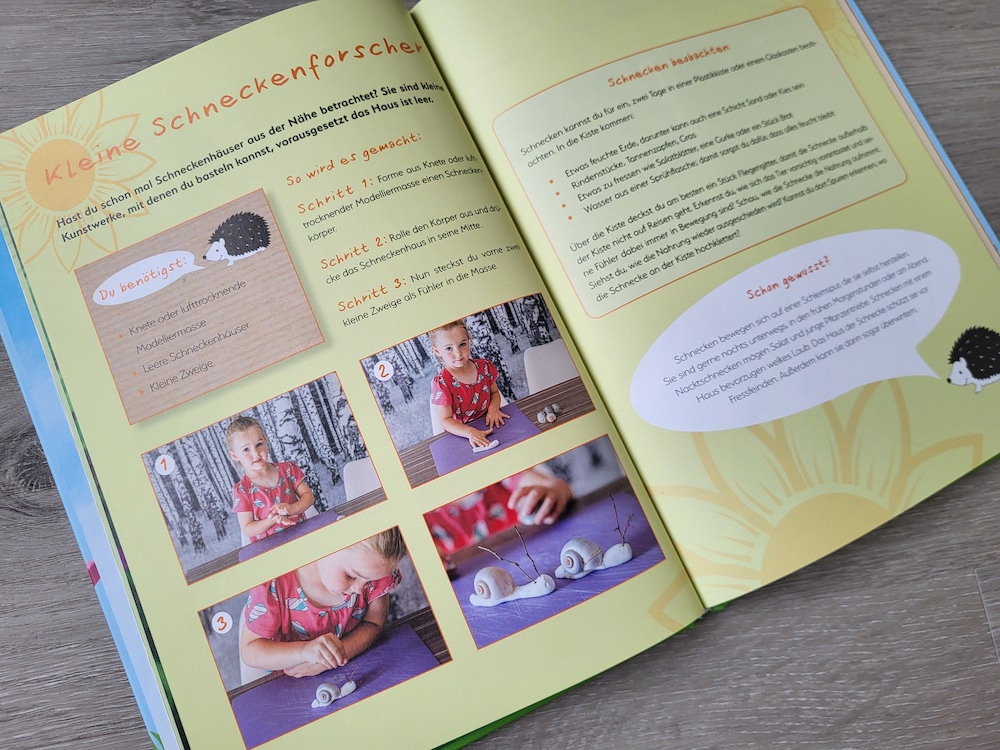 Zwischendurch gibt es immer wieder kleine Igel, die unter „Schon gewusst?“ kindgerecht Informationen zum Thema erzählen. Insgesamt ist das Buch nett gestaltet und bietet tatsächlich auch ein paar Ideen, die ich zuvor noch nicht auf Pinterest entdeckt habe, und dass, obwohl es für jede Jahreszeit nur einige wenige Ideen gibt und das Buch insgesamt nur 60 Seiten umfasst.